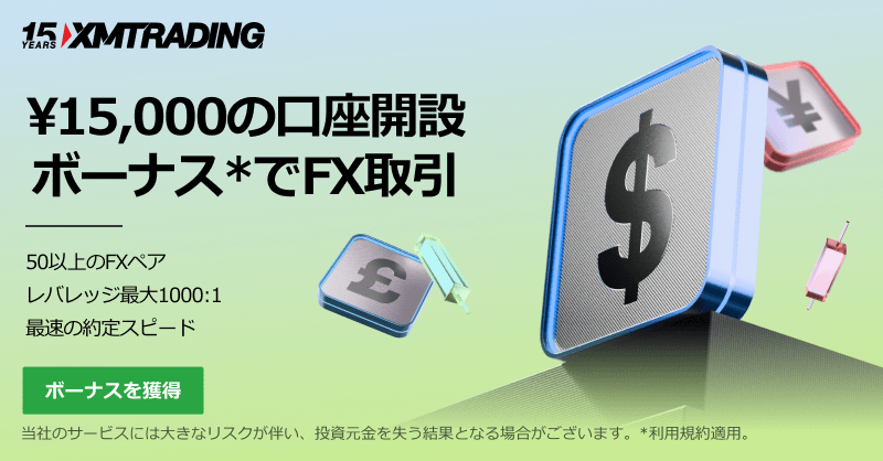 - 第1位:XMの口座開設ボーナス【15,000円】